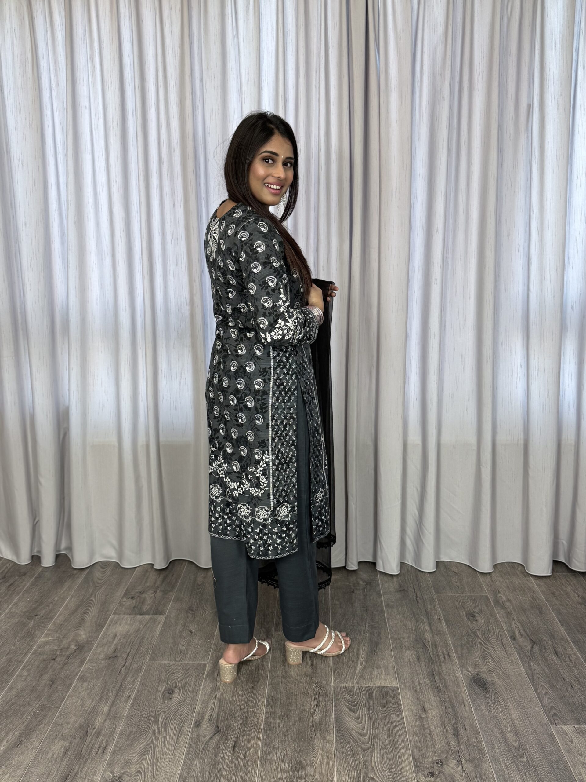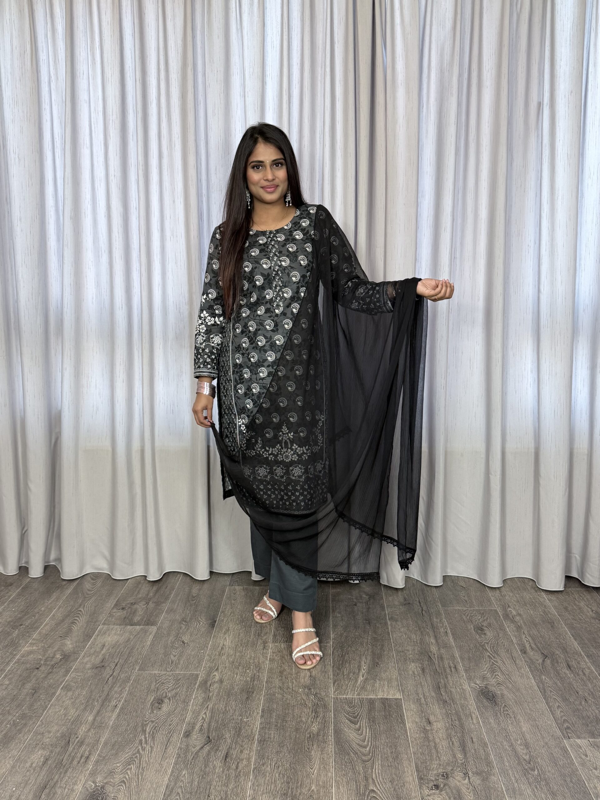 Driedelig wintersuit – khaddar met chiffon dupatta 0422