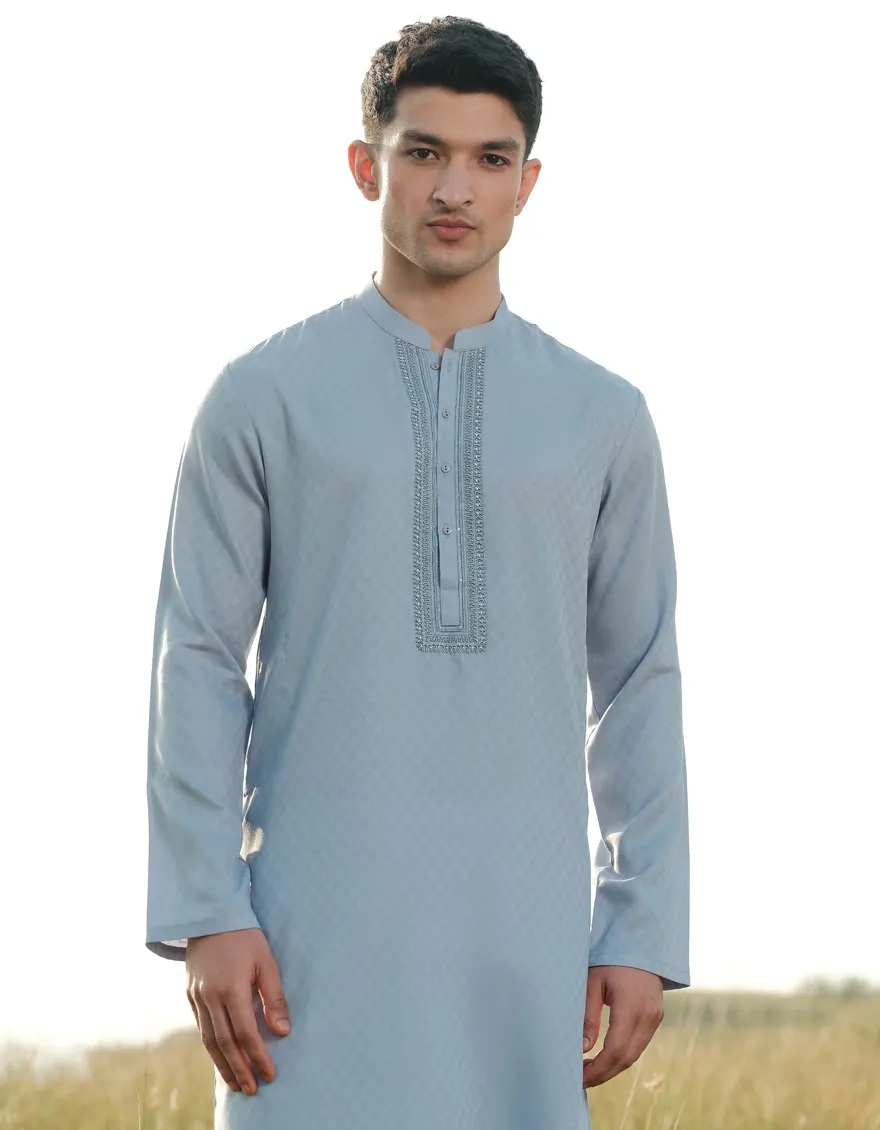 • Katoenen kurta wit met grijsblauwe ondertoon met ban gala