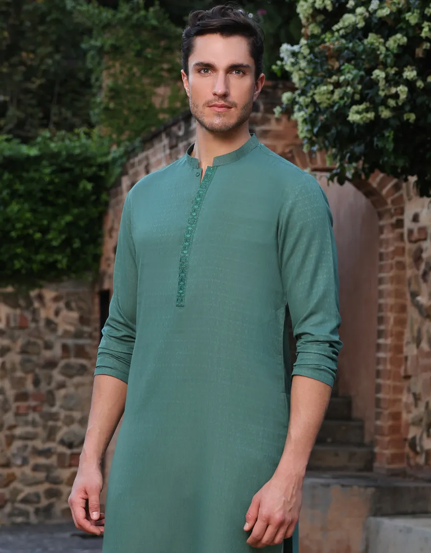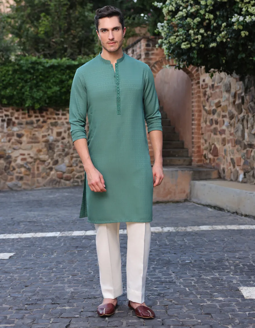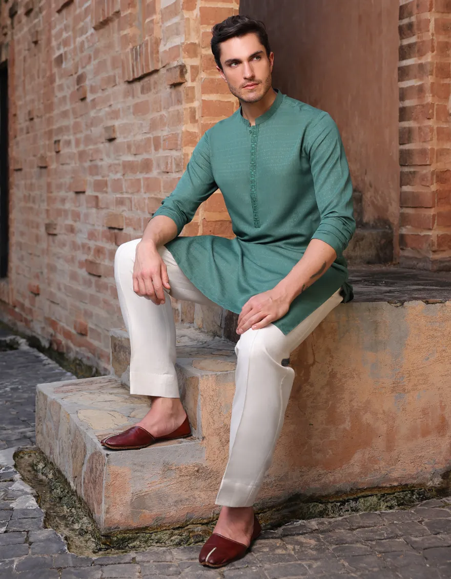 De kurta is te combineren met een witte broek. Te bestellen via onderstaande link