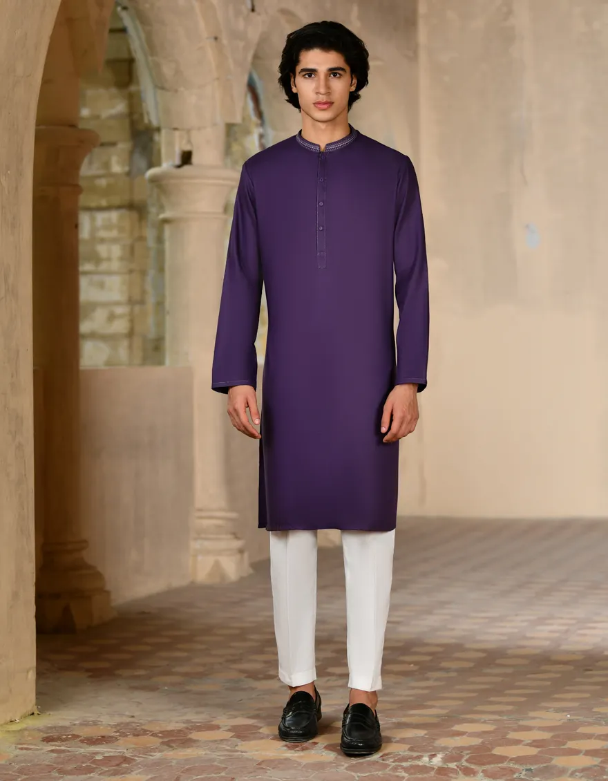 De kurta is te combineren met een witte broek. Te bestellen via onderstaande link