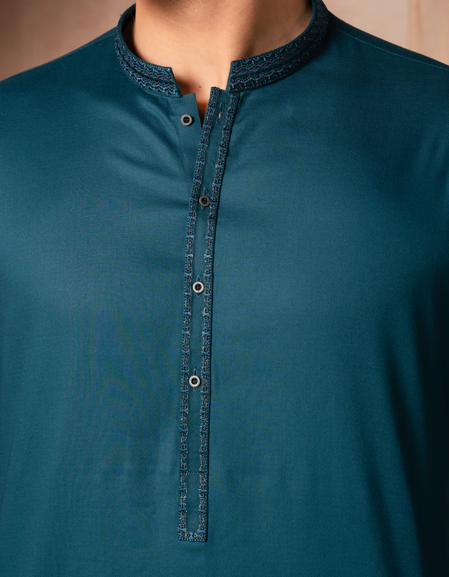 De kurta is te combineren met een witte broek. Te bestellen via onderstaande link