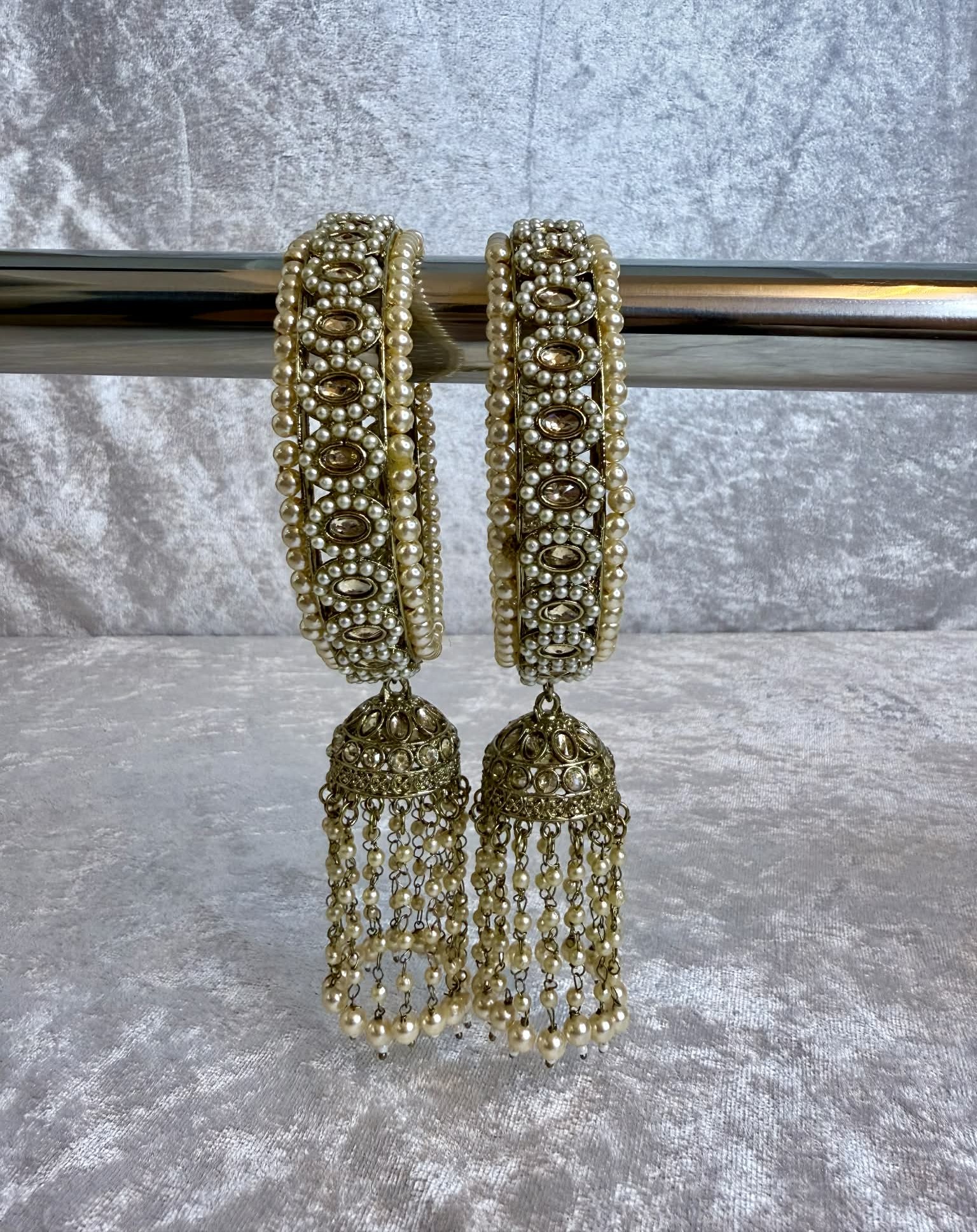 Home Accessoires Dames Chooriyan Karay met jhumka – goud lang