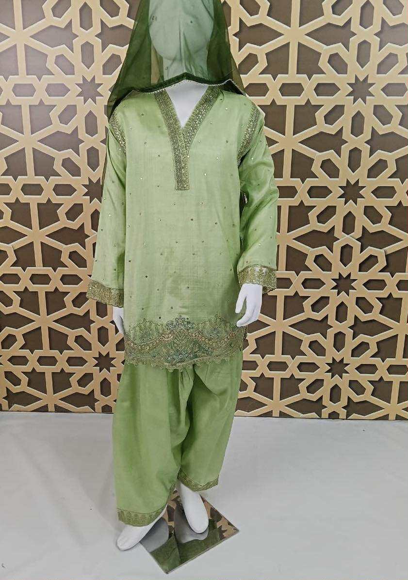 Home Meisjes Kleding 1-6 Jaar Katan silk shalwaar kameez mintgroen voor meisjes