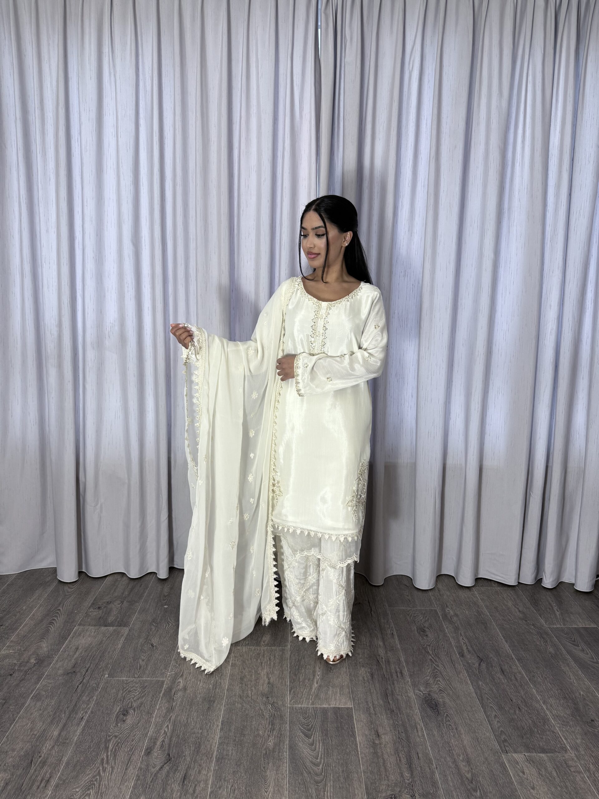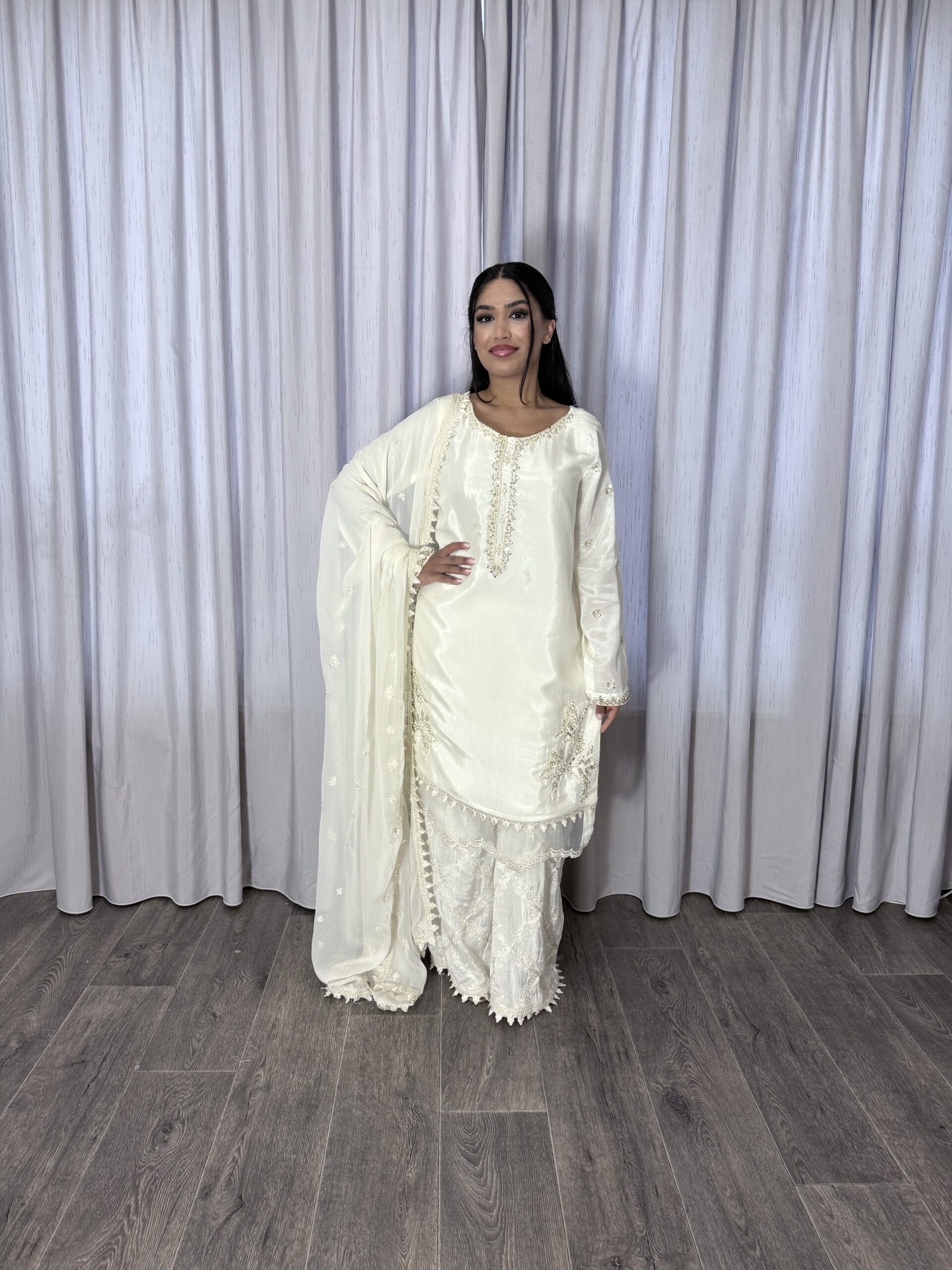 Home Dames Kleding Semi Formal en Fancy Mona raw silk plazzo suit wit – driedelig 2217