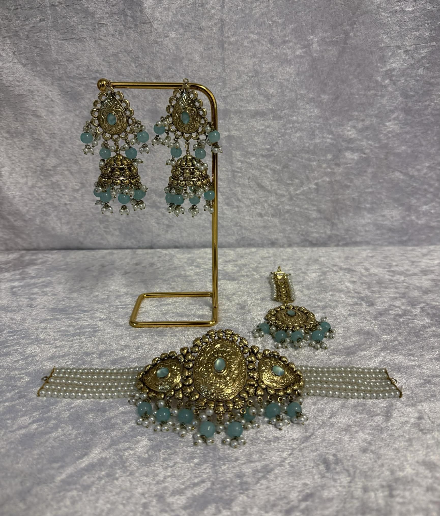 Home Accessoires Dames Sieraden Sets Normale Sets Sieradenset goud met lichtblauw- 14948