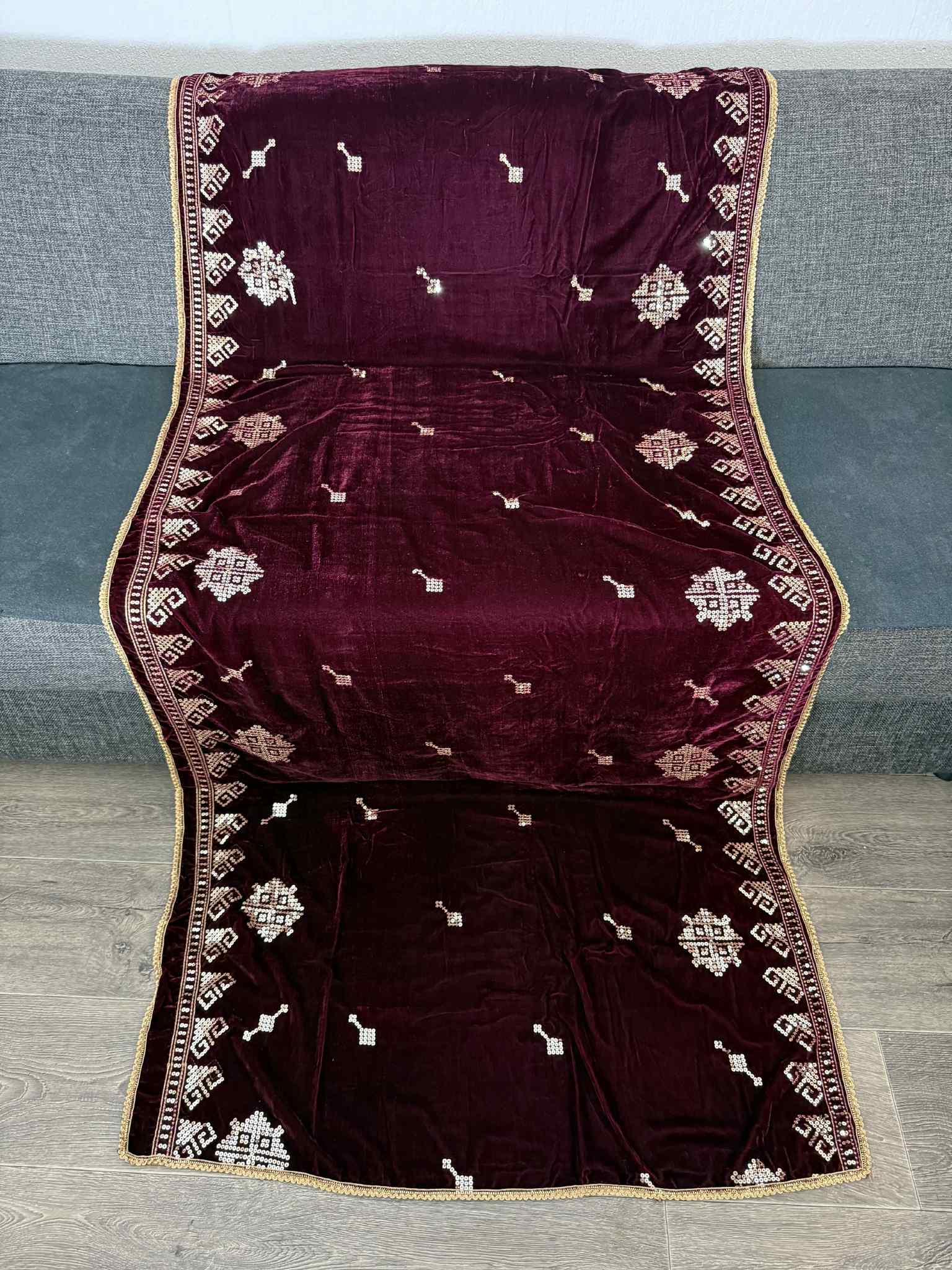 Home Dames Kleding Shawls and Dupattas Velvet shawl- bordeaux 14799