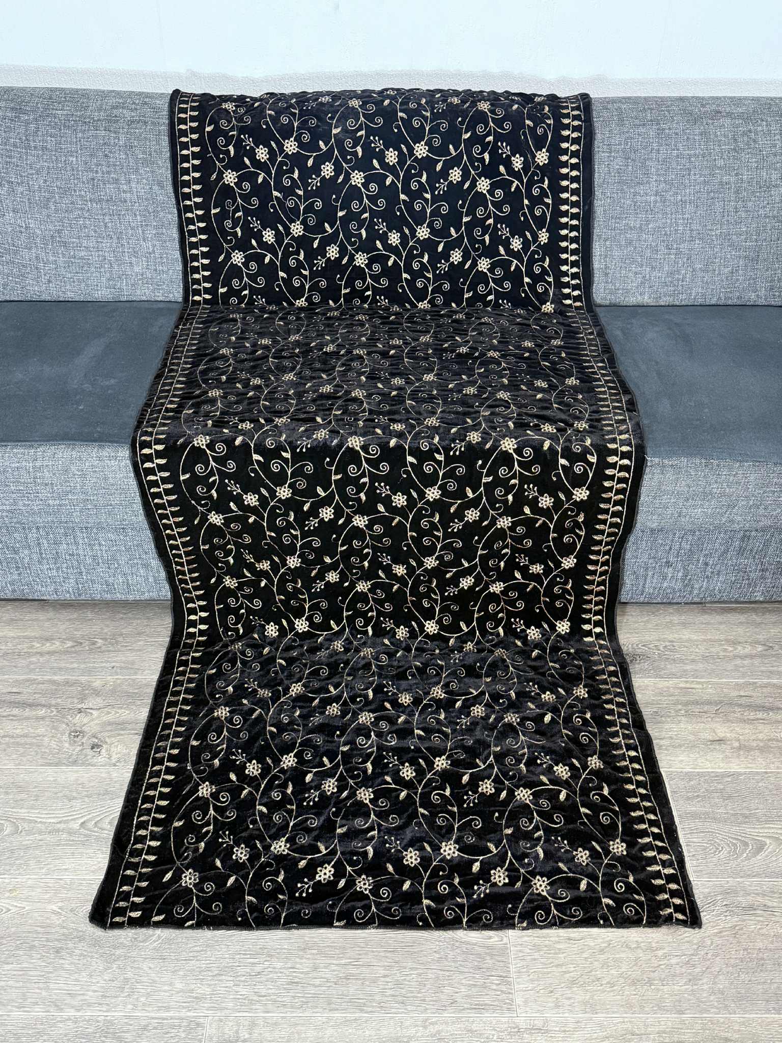 Velvet shawl zwart met goud 1005