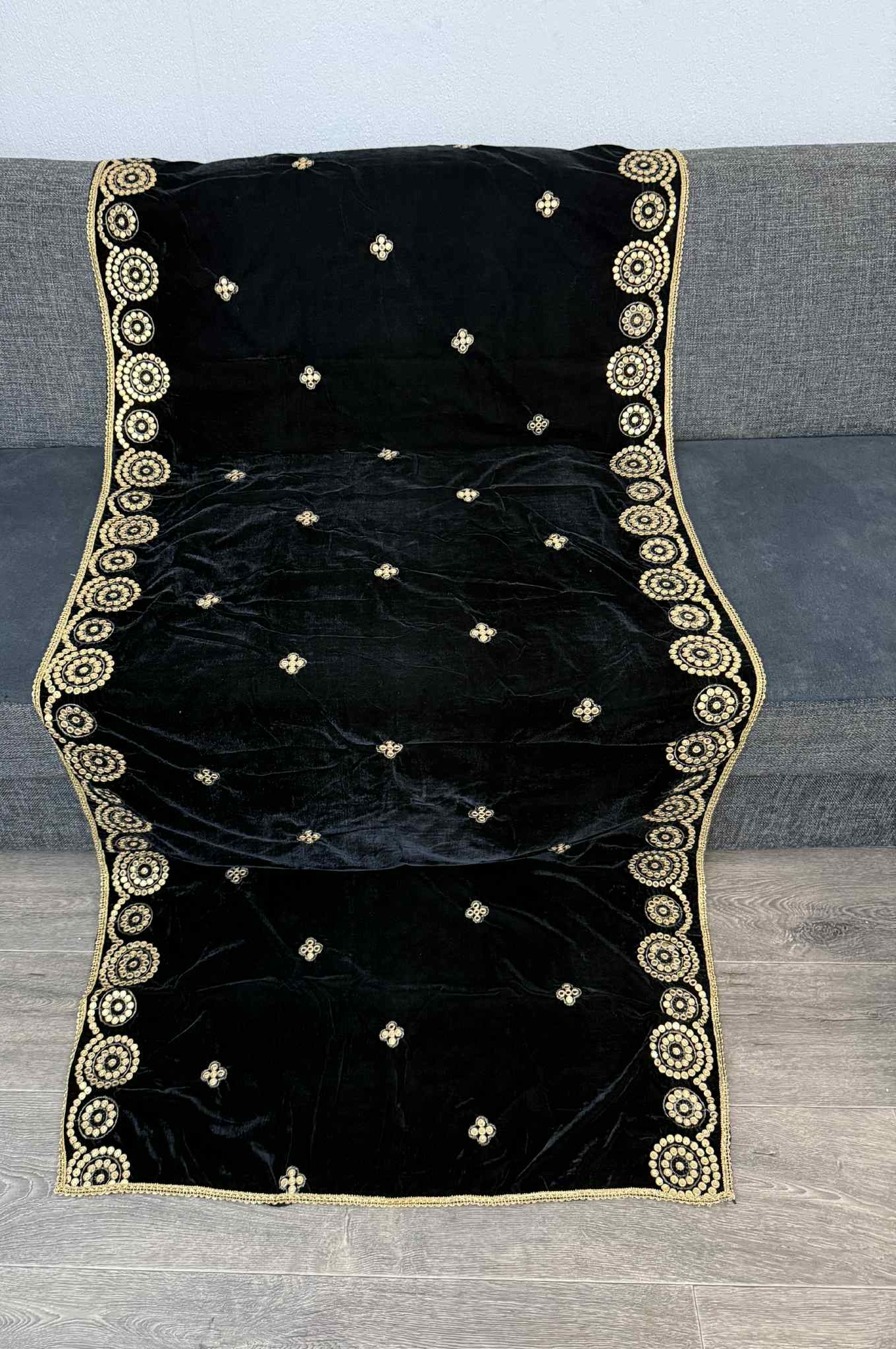 Home Dames Kleding Shawls and Dupattas Velvet shawl- zwart 14794
